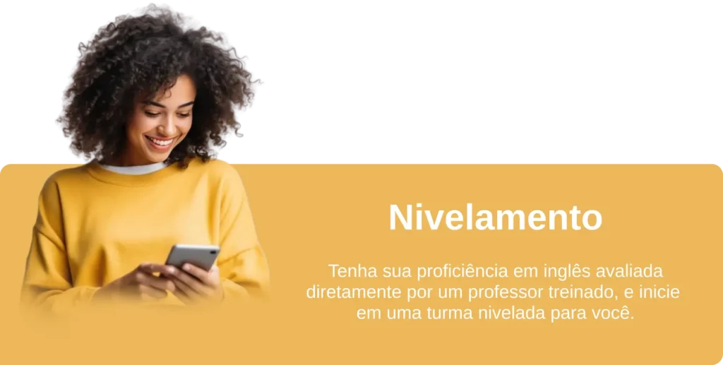 Nossa metodologia ESL, tem foco na comunicação real em inglês, com uma abordagem viva e prática, diferente dos métodos tradicionais focados apenas em gramática. E é claro, tudo isso está presente dentro da sua escola, com acompanhamento presencial!